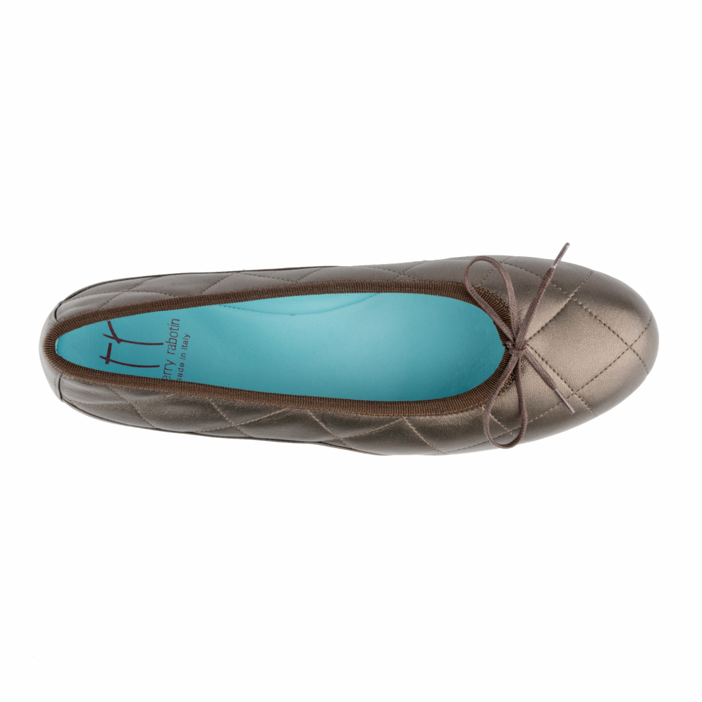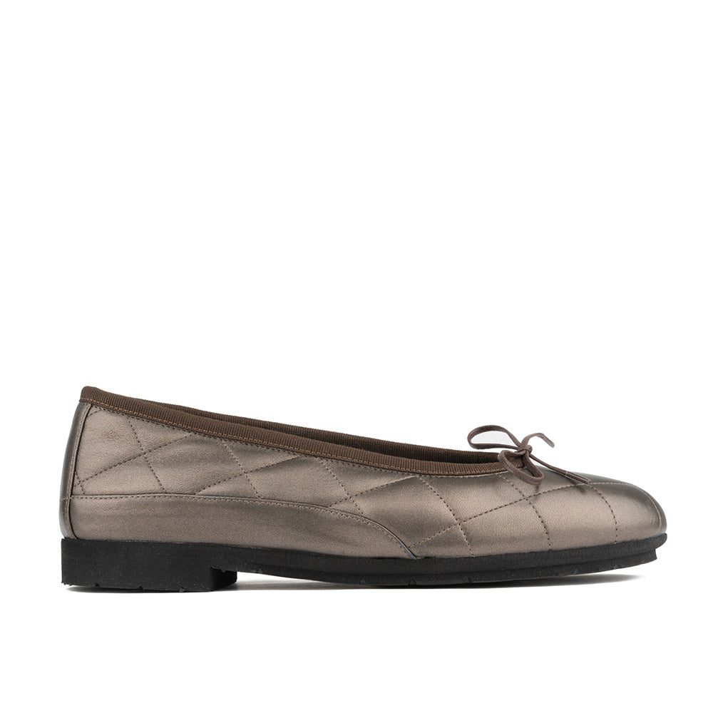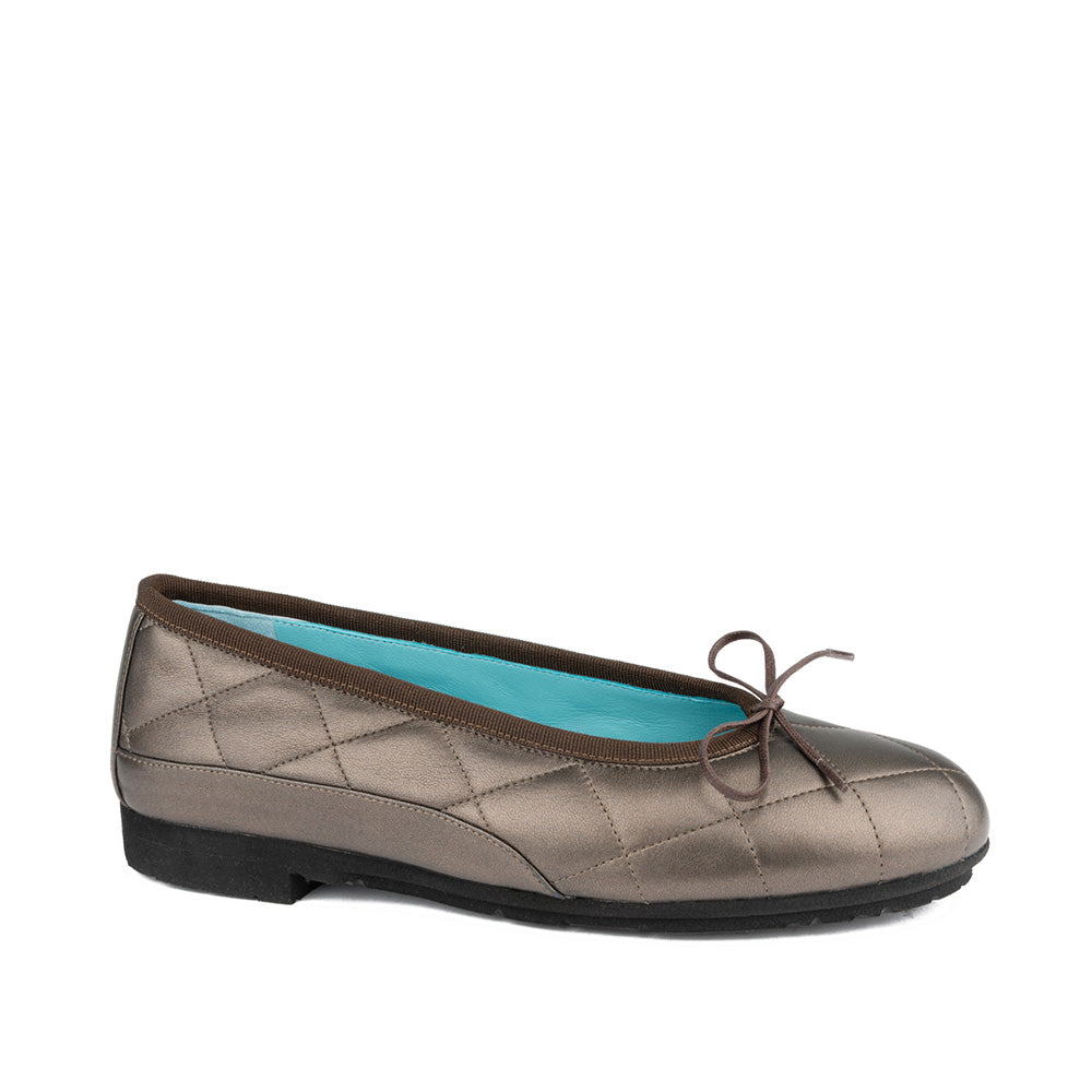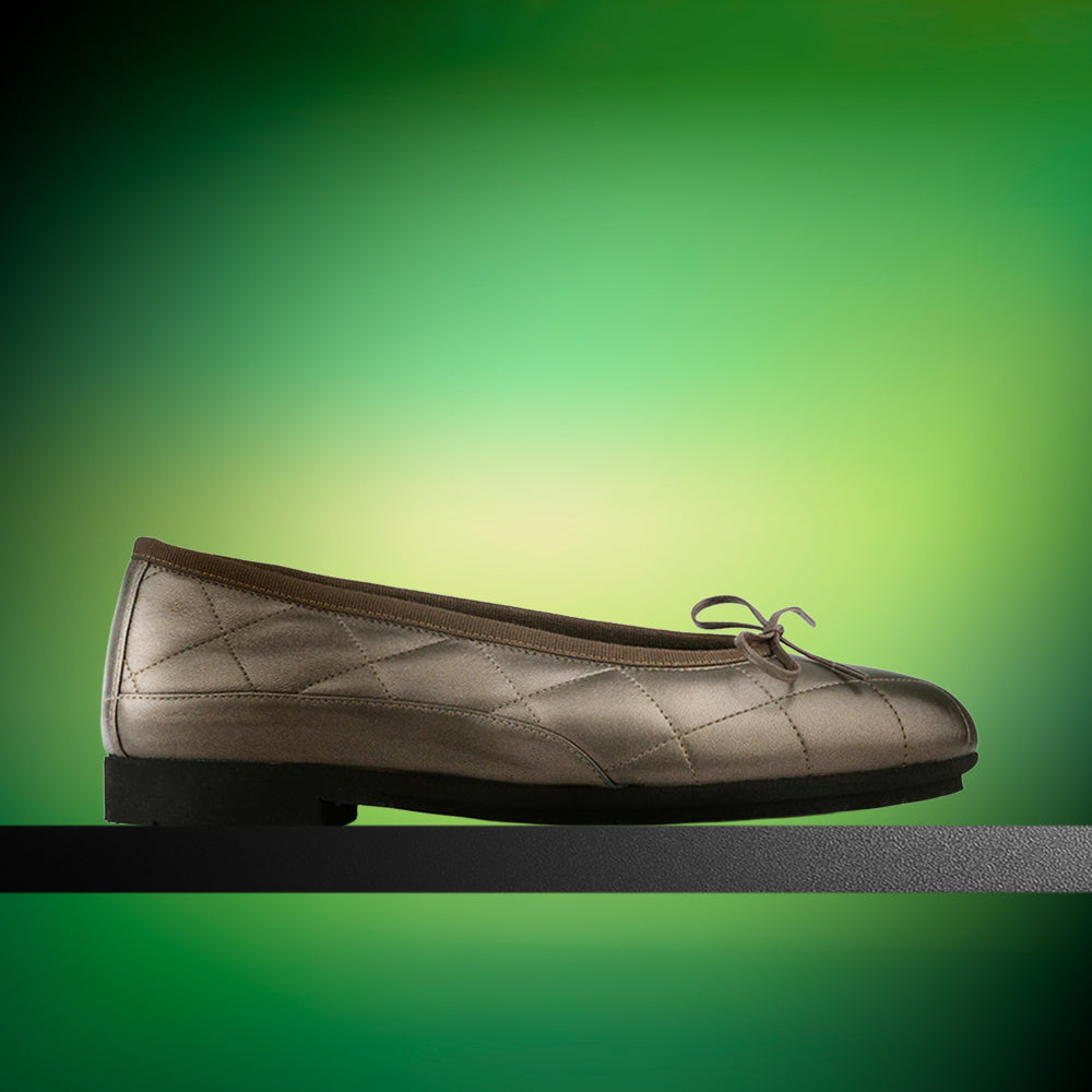These supple, leather, quilted shoes provide a twist on the classic ballet flat with an outer sole to allow for shock absorbency to complete a classic yet very comfortable look.