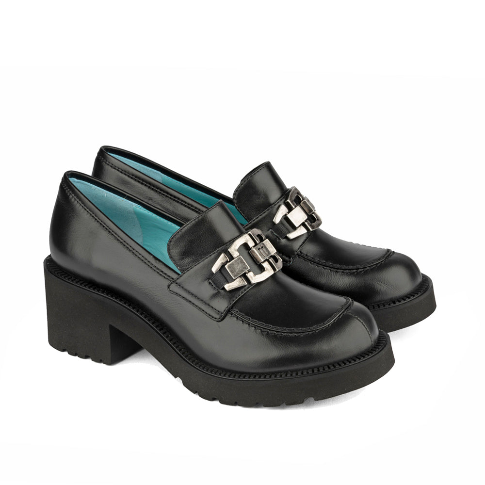 Crafted from premium black nappa leather, the Zamal Black Nappa features a durable 2.25-inch wedge designed for both comfort and stability. Accented with a pewter metal TR logo, this shoe combines refined craftsmanship with subtle branding, making it an expert choice for those seeking elegance and lasting quality.