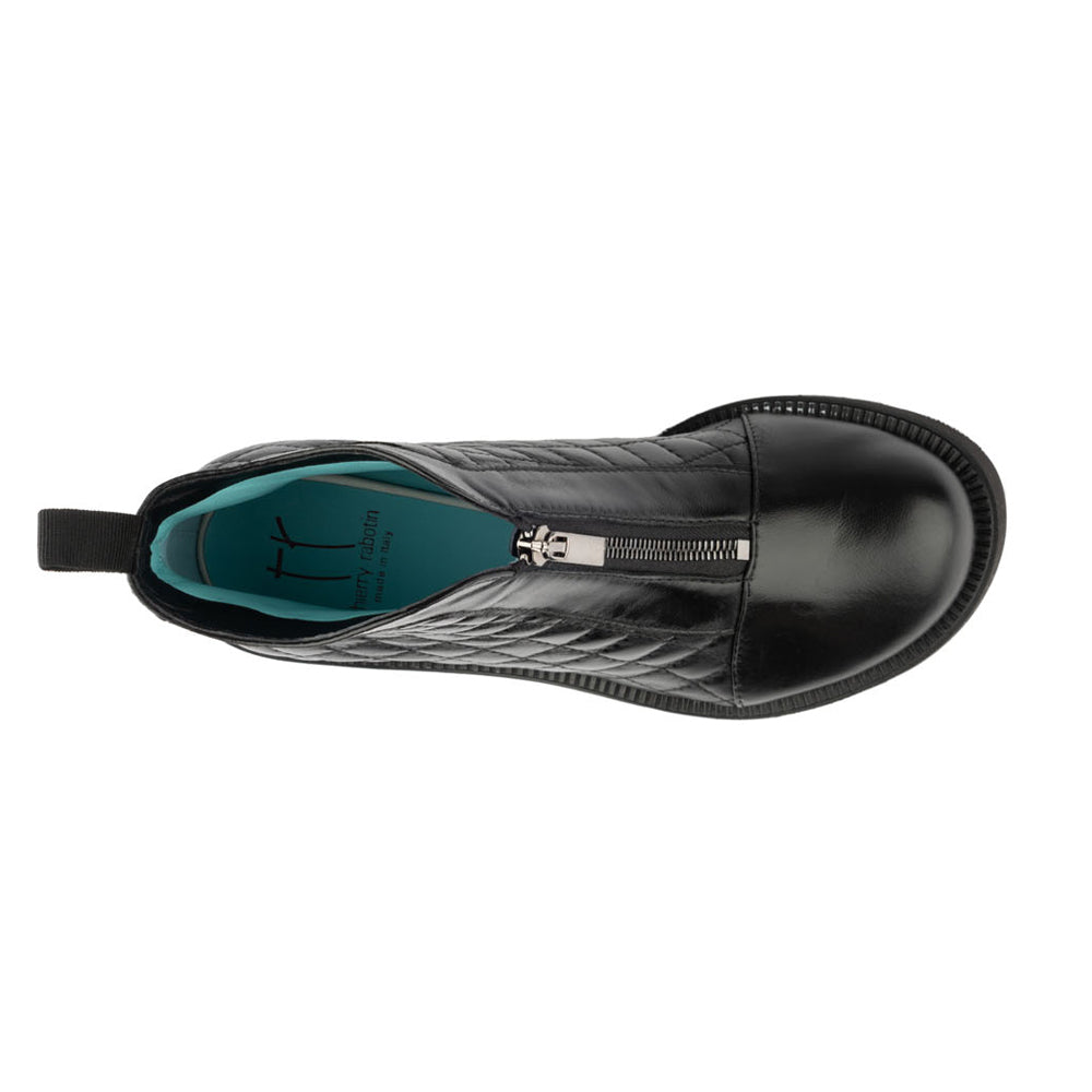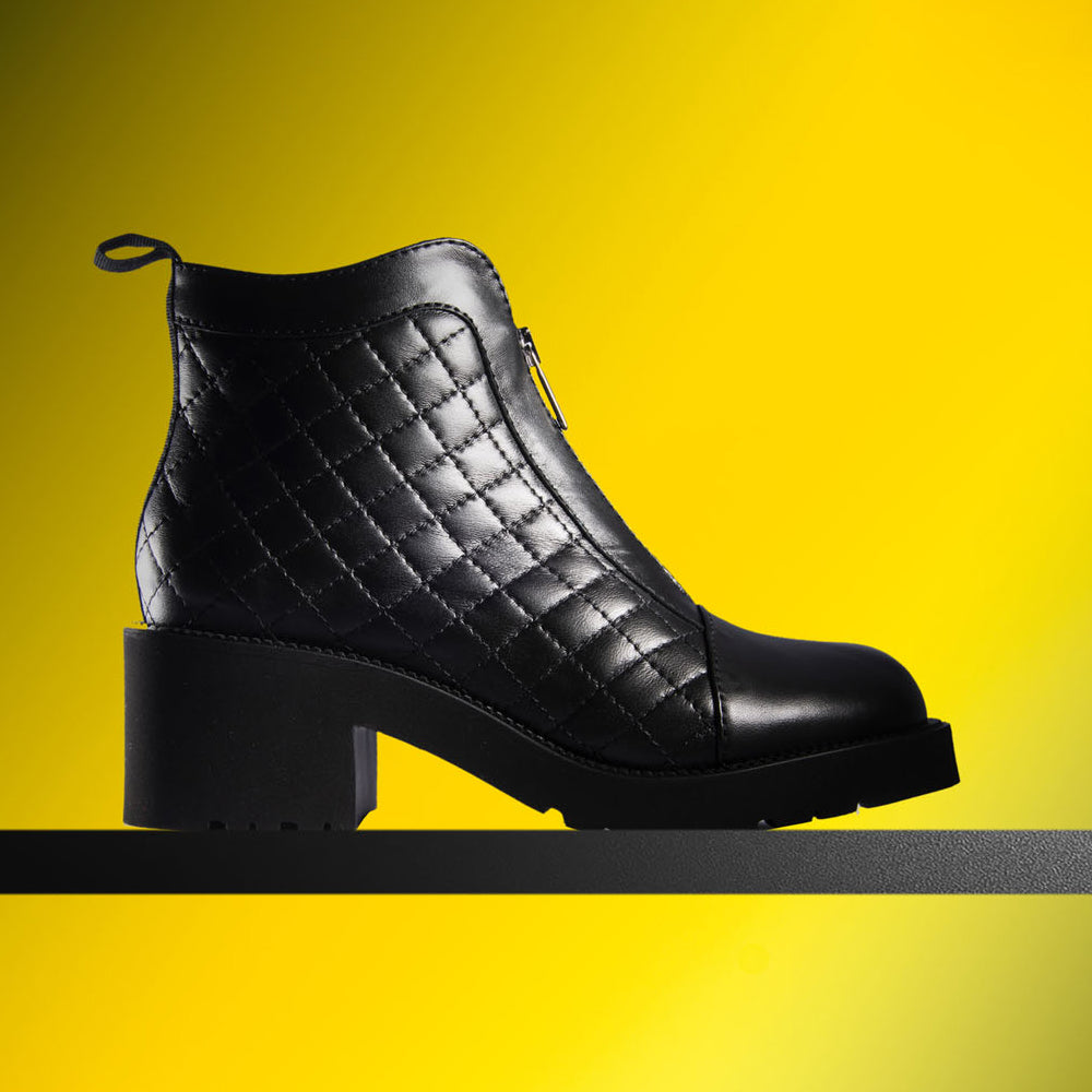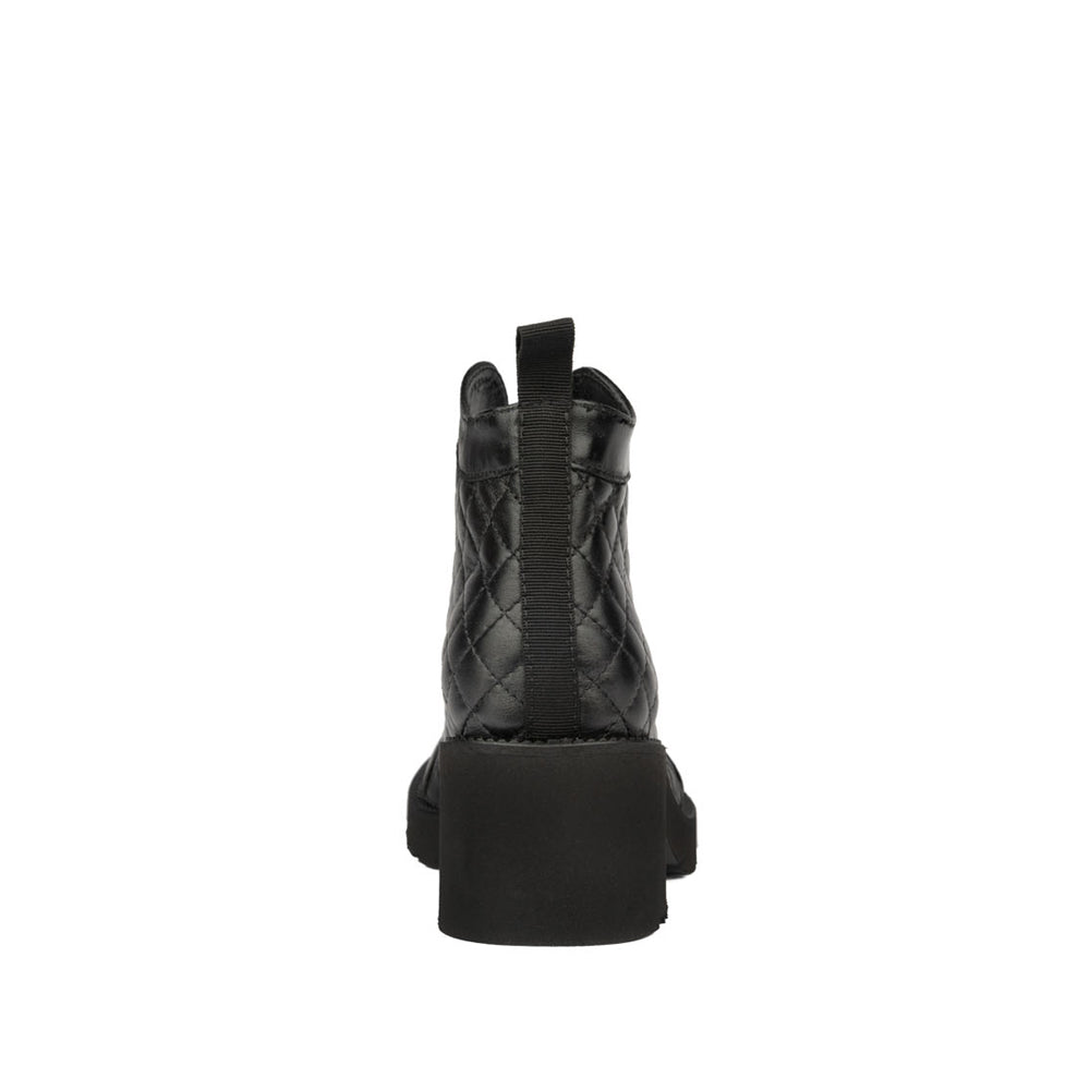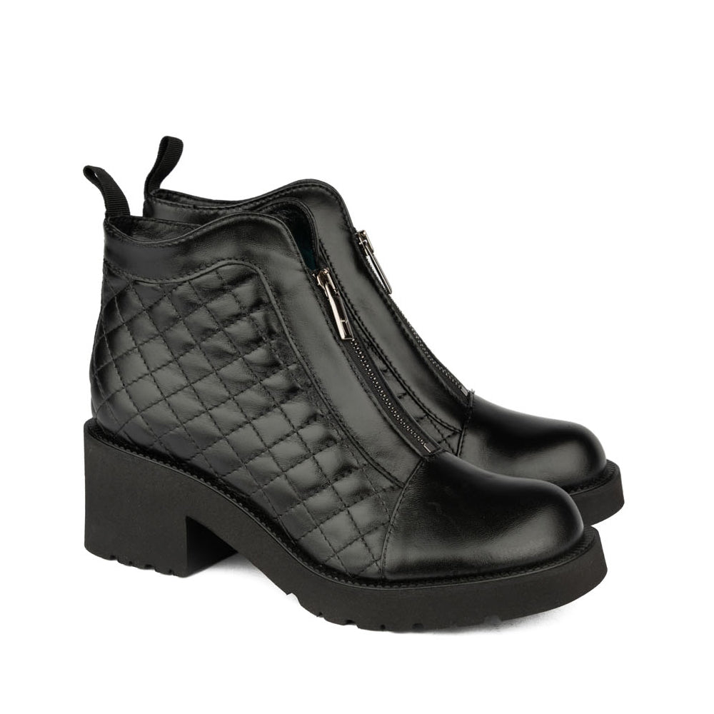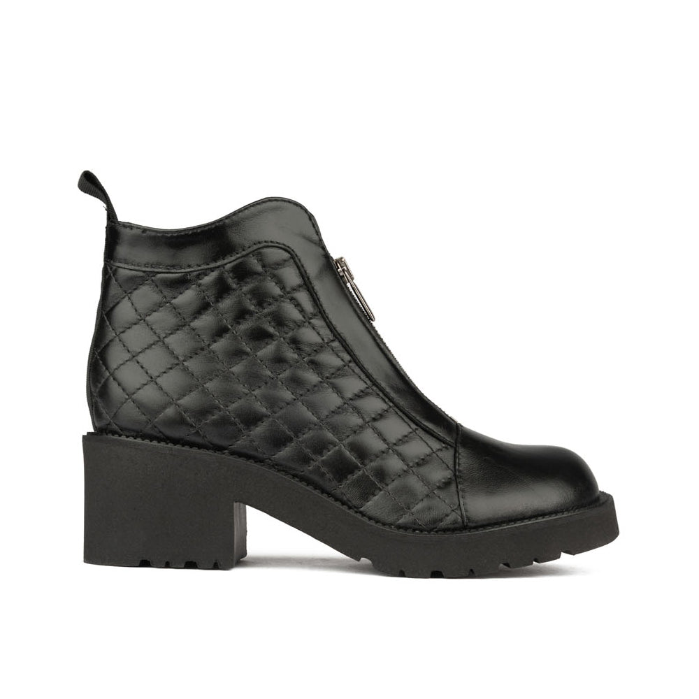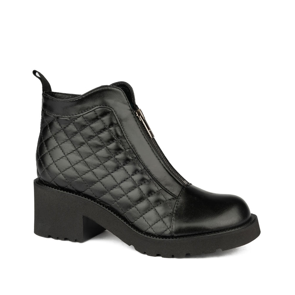 Crafted from luxurious black nappa leather, these boots feature a quilted front design and a convenient zip closure for a sleek, modern look. The supple leather ensures comfort and durability, making them an expert choice for stylish, everyday wear.