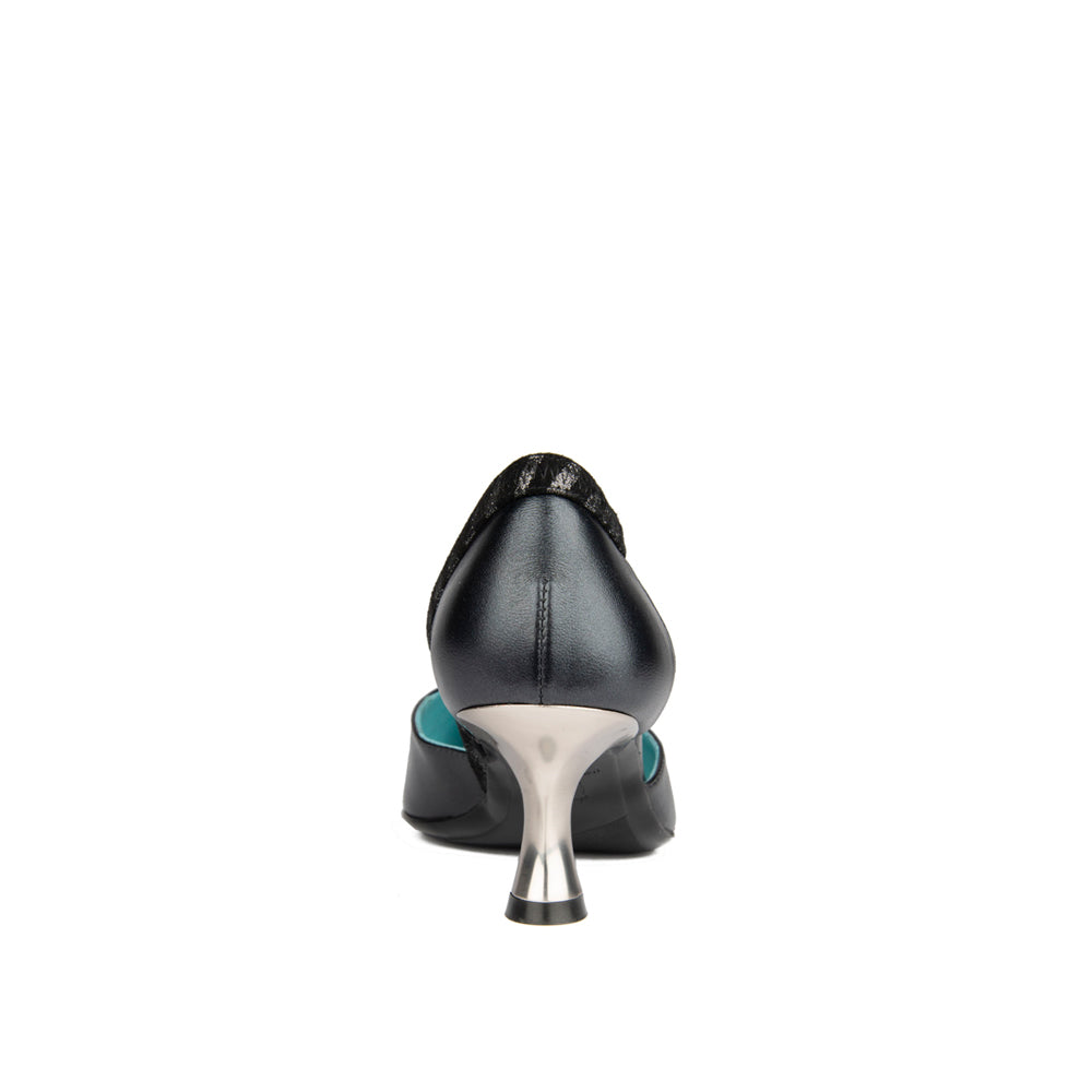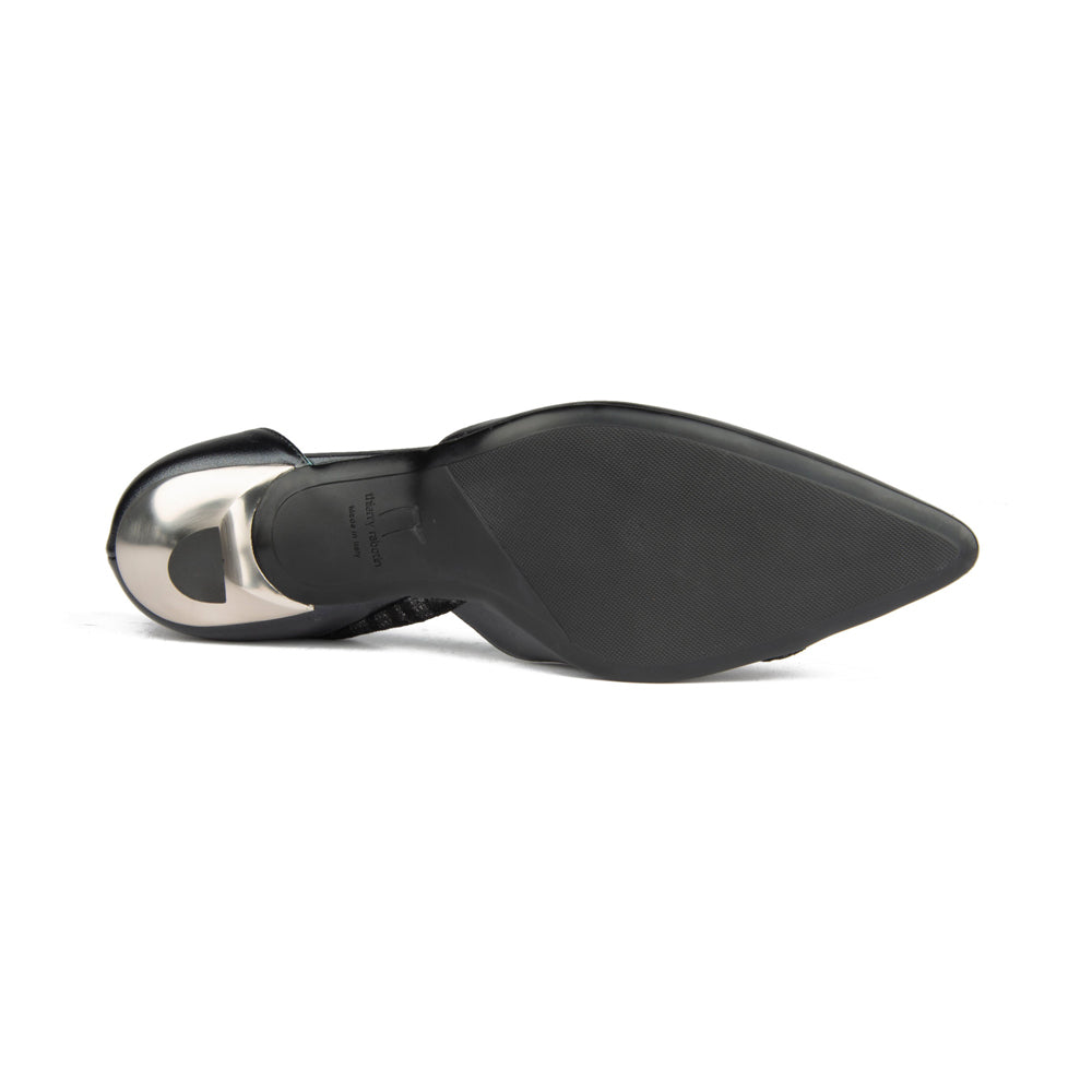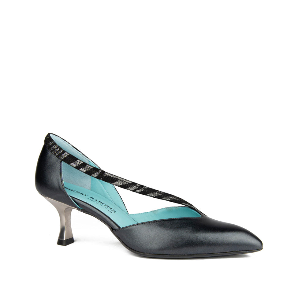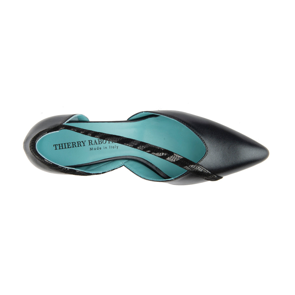 Elevate your style with the Roby Black Nappa, featuring gorgeous nappa upper complemented by a bold silver leopard detailed strip. The sleek black heel offers subtle lift and all-day comfort, making it a refined choice for both professional and evening wear. Crafted for those who appreciate expert design and understated sophistication