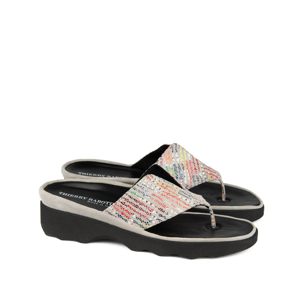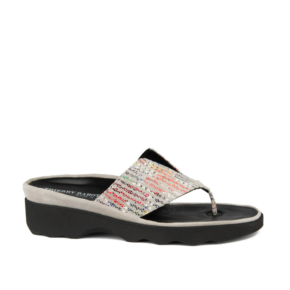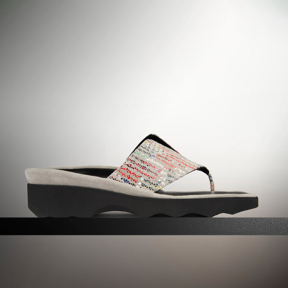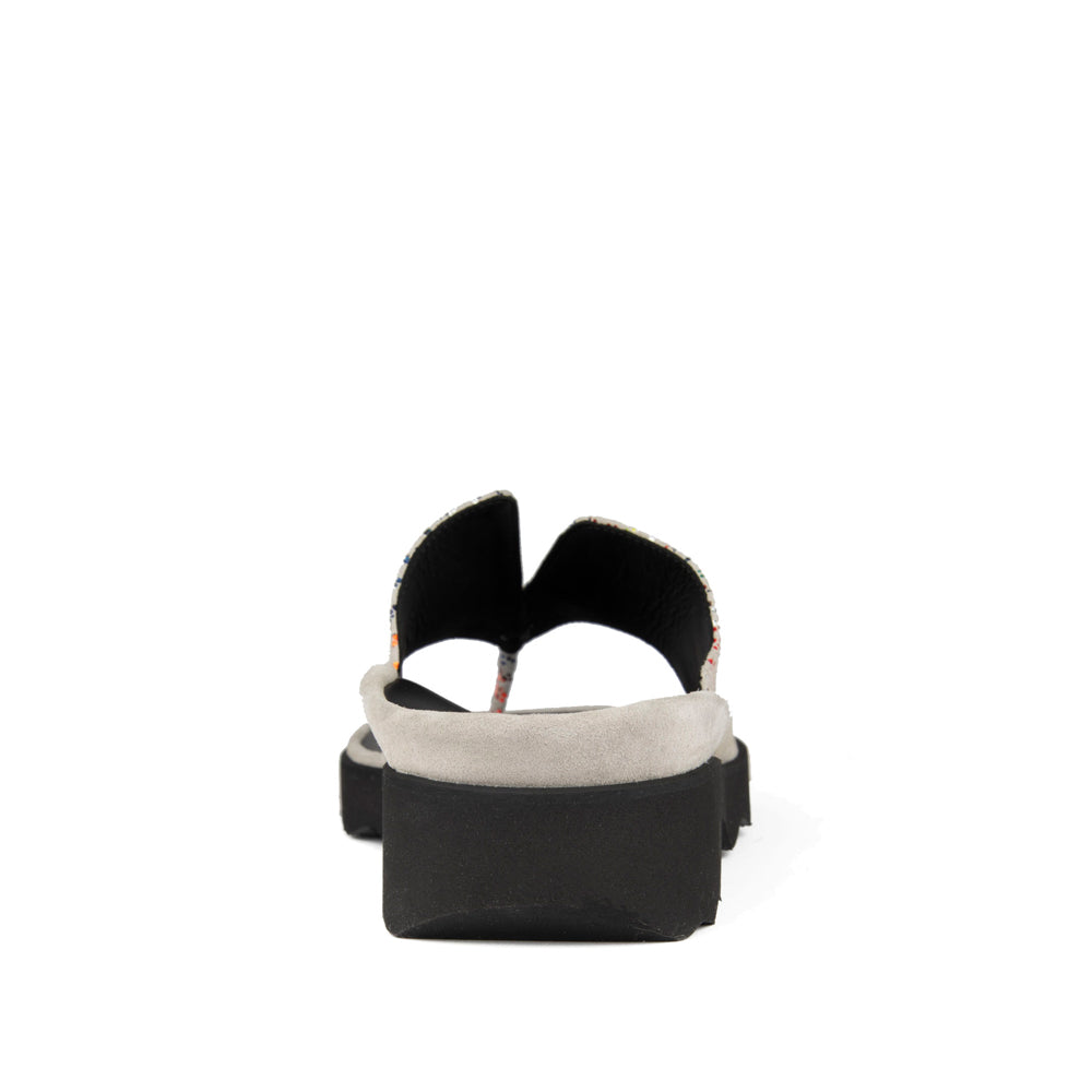 Effortlessly stylish and ultra-comfortable, the Wilt flip flop sandal features soft grey suede accented with playful multicolored dots. Designed with a cushioned footbed and a lightweight platform sole, it offers all-day support with a modern, eye-catching touch—perfect for relaxed summer days or casual chic looks.