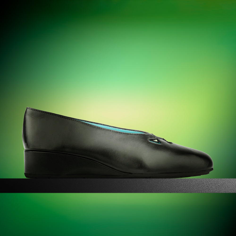 Our new pump is done in soft Black Nappa.  Done on a wedge for comfort.  A must have.