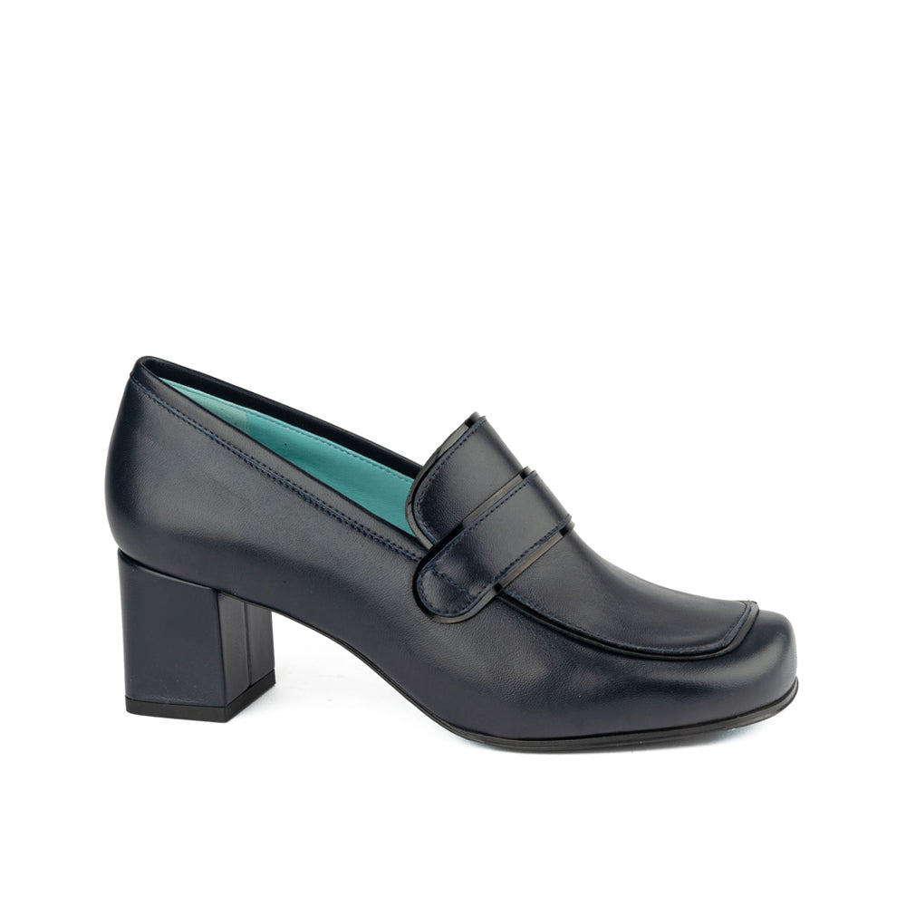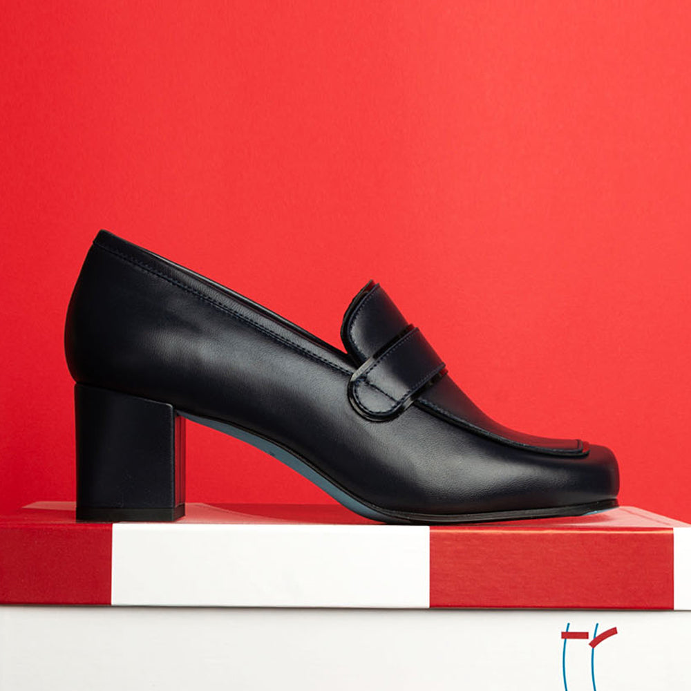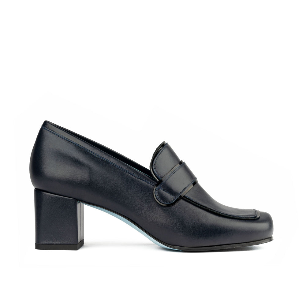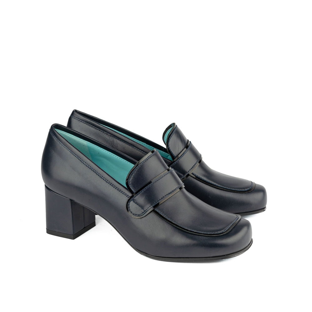 Our new loafer is done in soft Navy Nappa.   Done with a covered heel for a new look.
